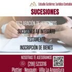 – Sucesiones: declaración de herederos, sucesiones AB intestato, testamento, inscripción de bienes