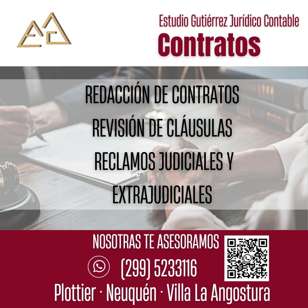 – Contratos: redacción de contratos, revisión de cláusulas, reclamos judiciales y extrajudiciales